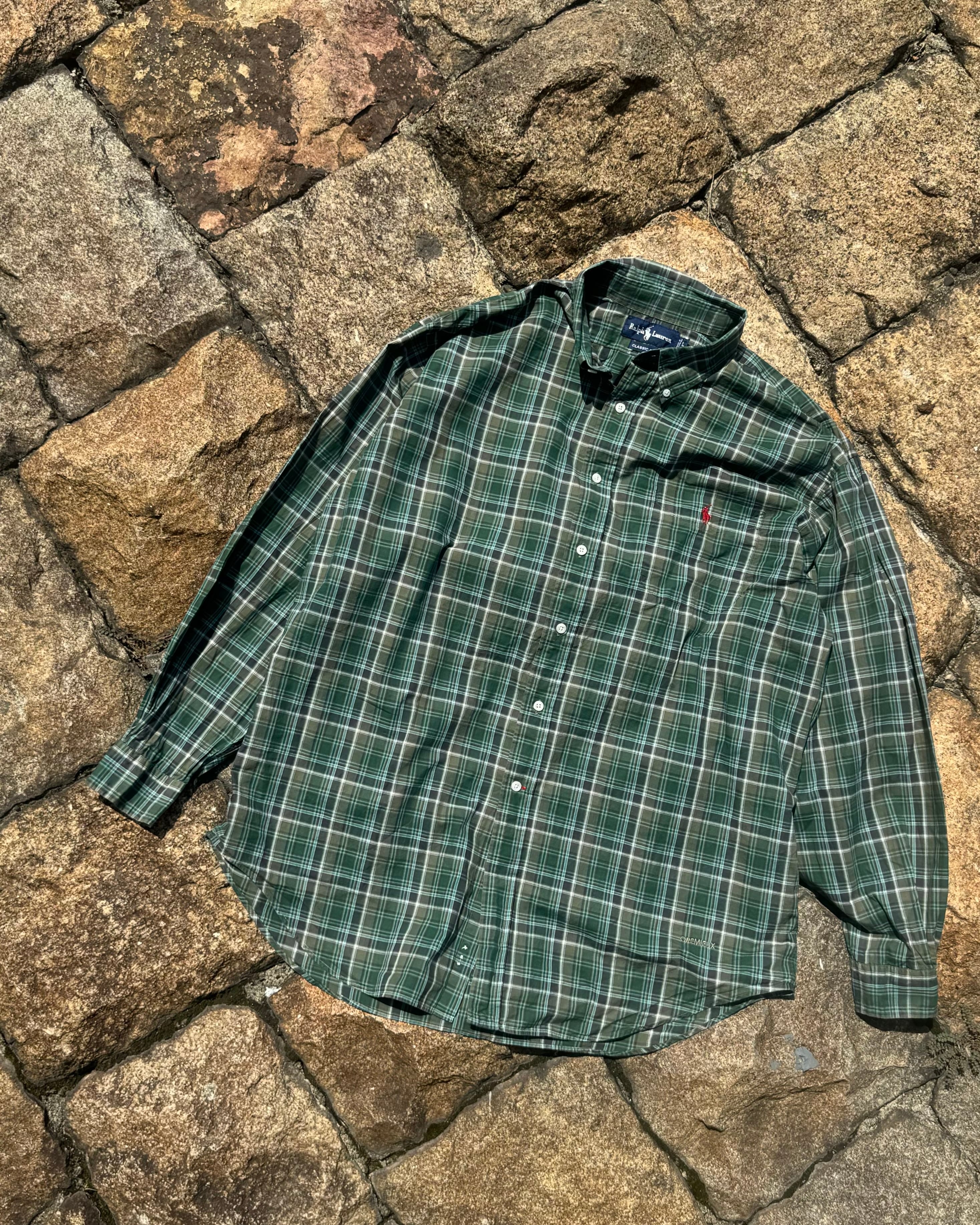 《L》00s POLO RALPH LAUREN ラルフローレン CLASSIC FIT マドラスチェック 長袖 シャツ 胸ポケット付き 古着 vintage | Enkeem -endure and keep moving-
