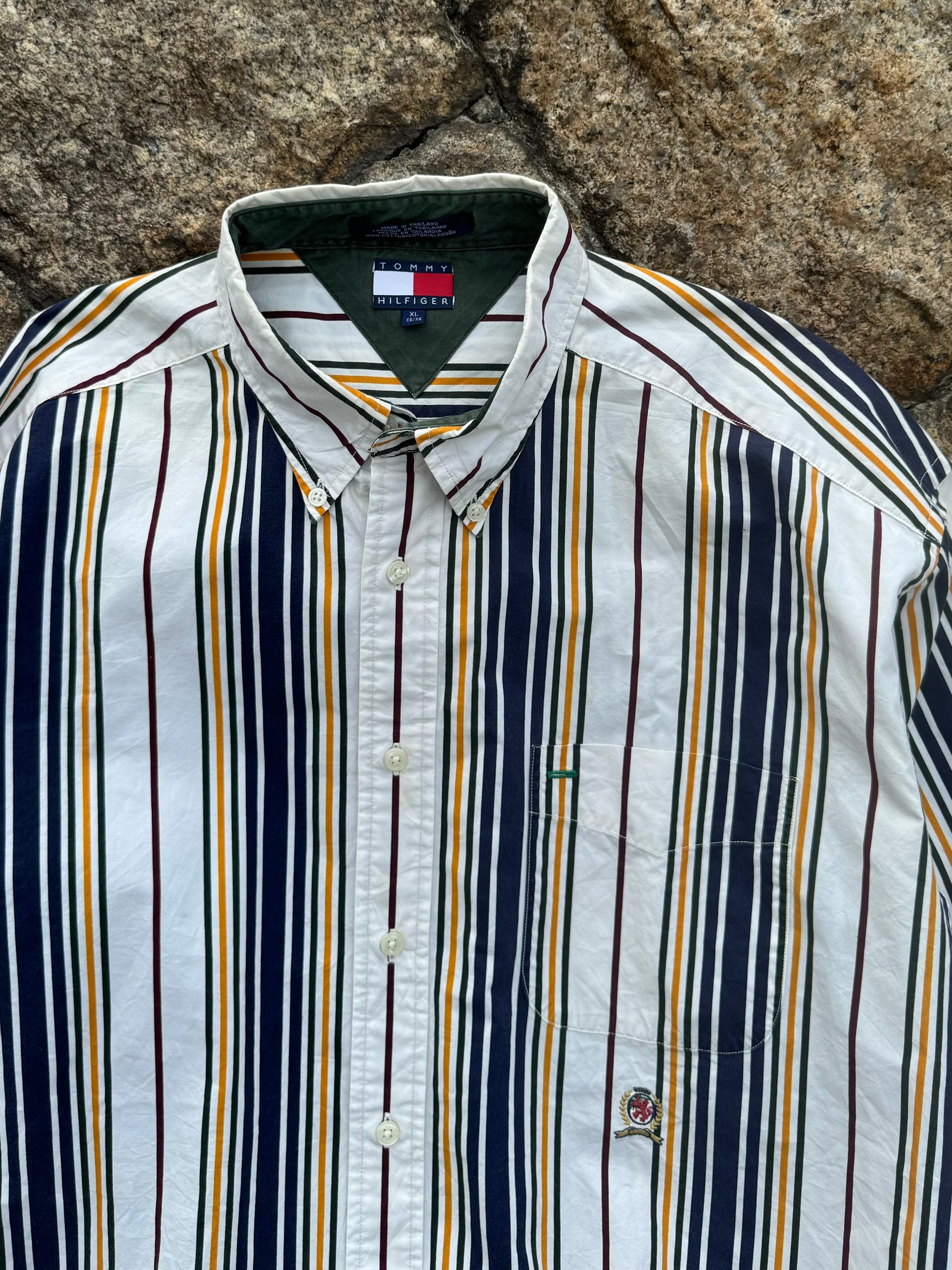 90s old TOMMY HILFIGERのマルチストライプシャツになります。