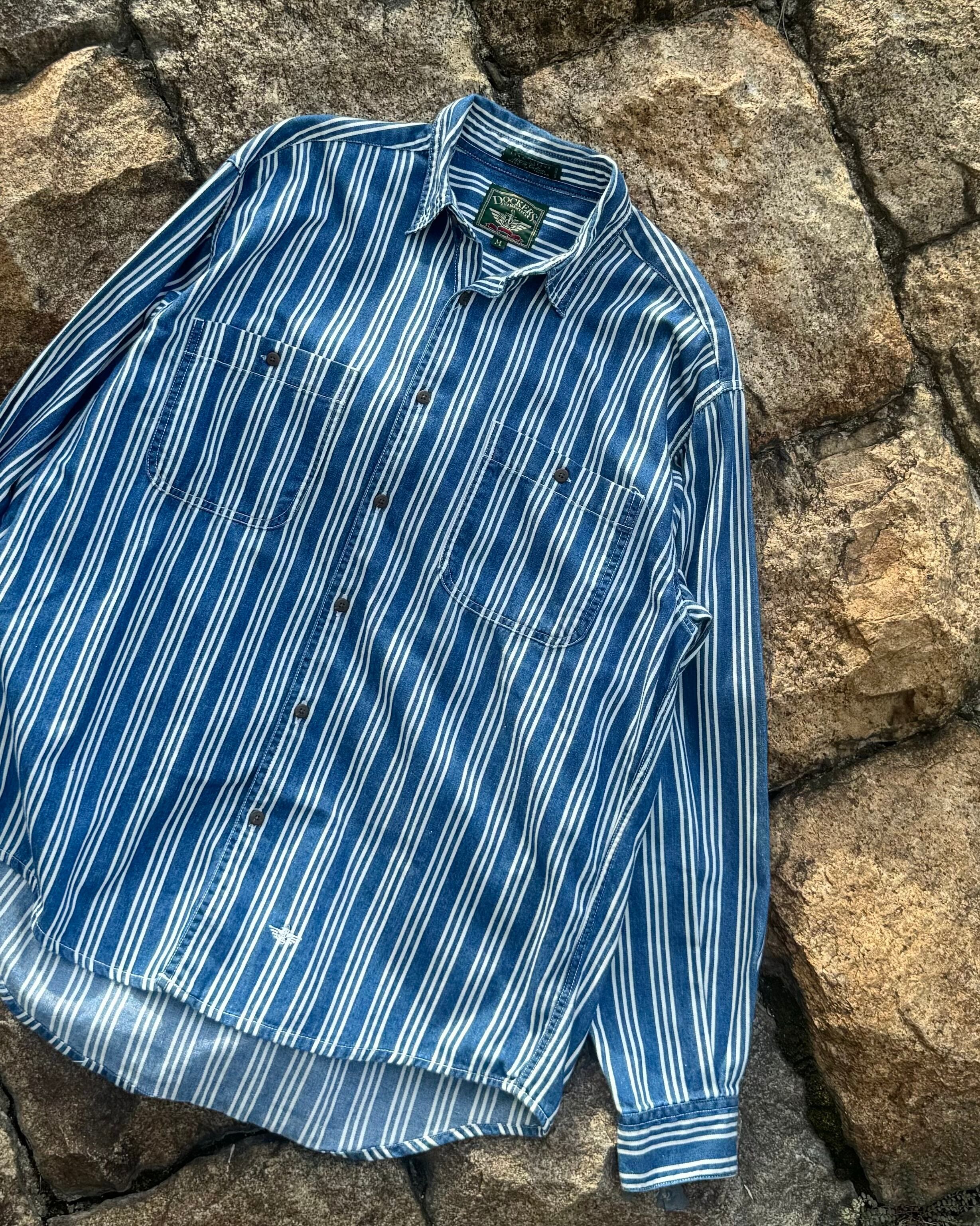 シャンブレにちかいサラッとしたデニムストライプシャツになります。