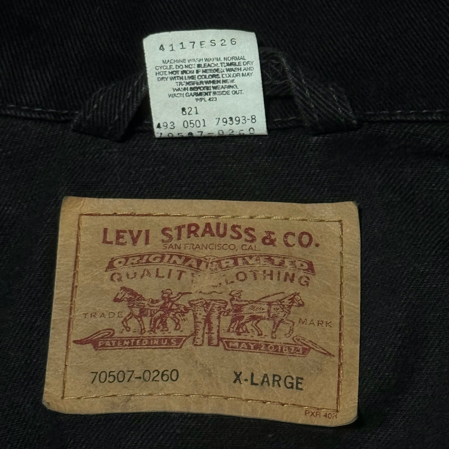 93年製造のメキシコ製にはなりますが、タグの具合からも数回洗っただけの真っ黒の状態です。ここまで濃いのもなかなか見なくなってますね。